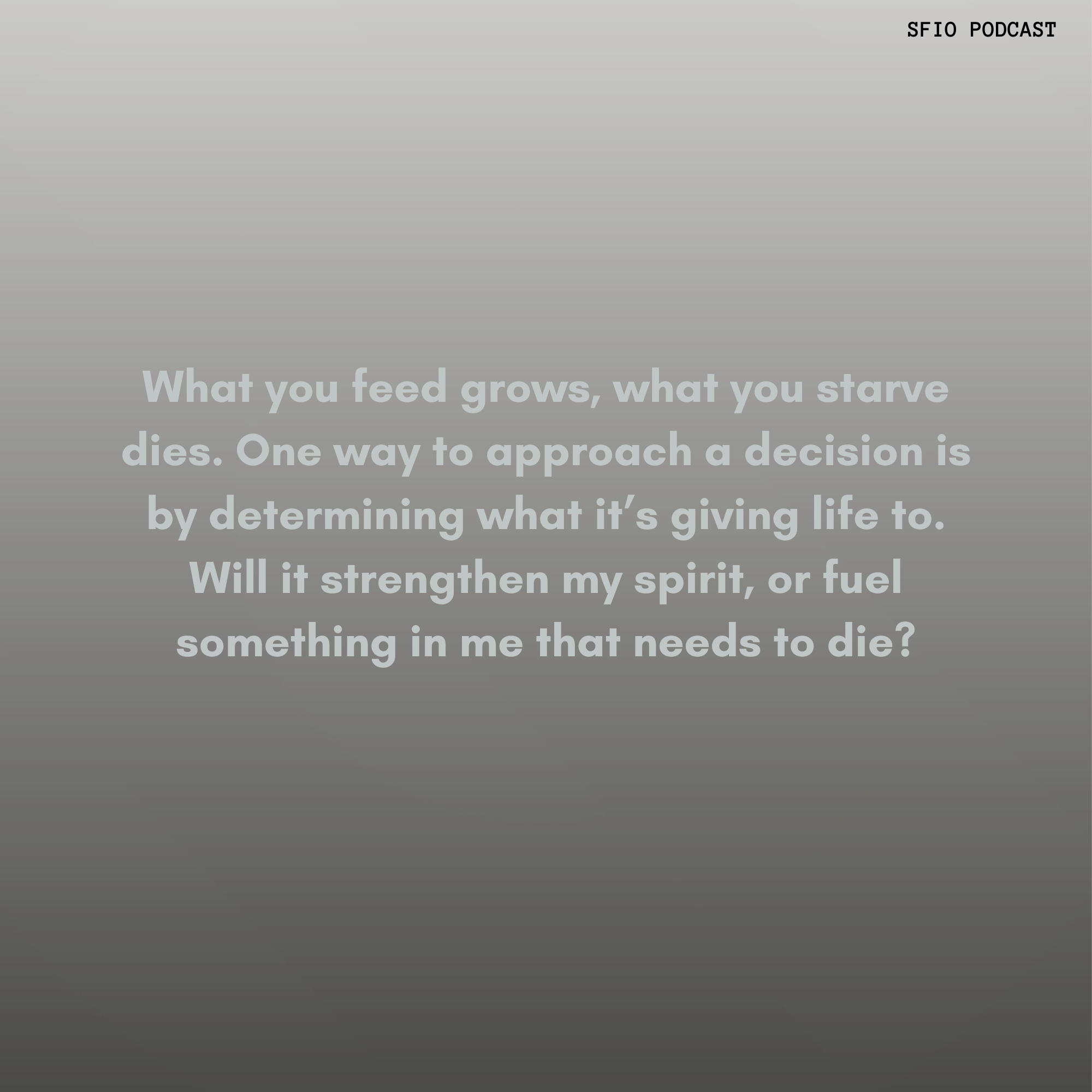 what it’s giving life to. Will it strengthen my spirit, or fuel something in me that needs to die?